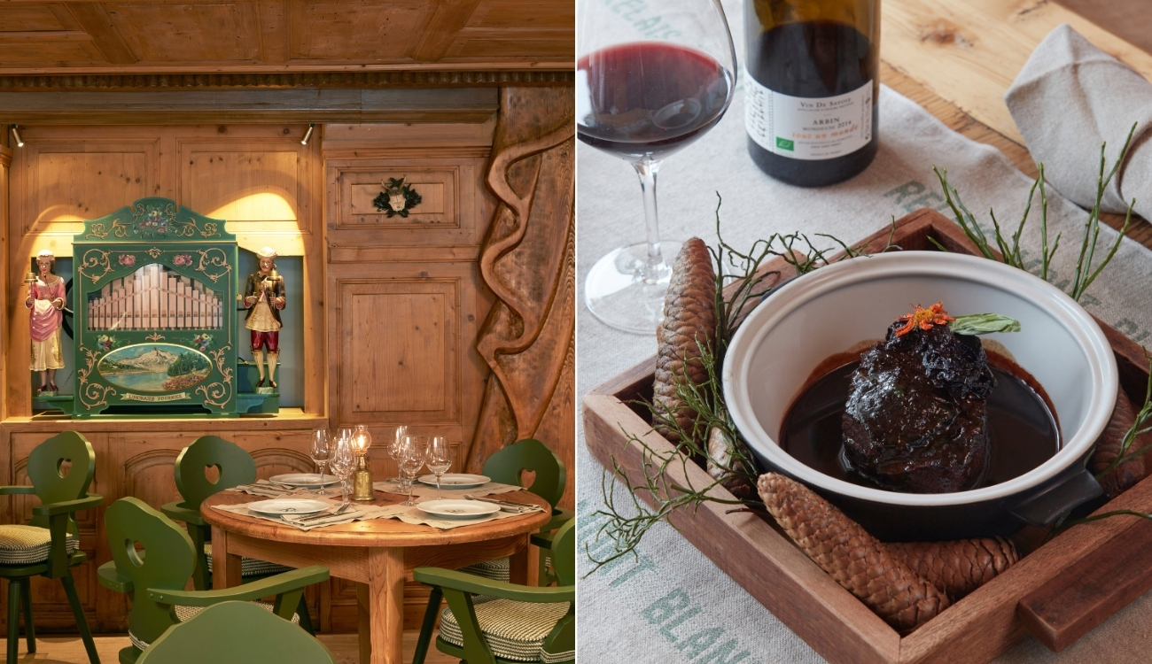 ... What remains is this ultra-chic bistro, "the place to be," I might say. My new restaurant, Le Relais du Mont Blanc, celebrates the cuisine of the Alps. In a charming setting decorated with light wood, tapestries, and pretty naive paintings, you can sample delicious recipes gleaned from the peaks of the Italian, Austrian, Swiss, and Savoyard Alps, from grandmothers' recipe books and trattorias serving generous cuisine.